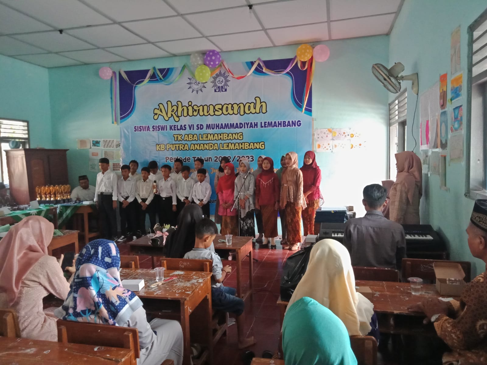 Deskripsi : Akhirusanah upacara peneguhan siswa yang telah menempuh pendidikan, merupakan penanda kelulusan siwa yang telah menempuh masa belajar. Akhirusana yang dilaksanakan di dalam ruangan kelas 4,5,6 yang dihadiri oleh seluruh siswa kelas 6, TK, Paud beserta orangtua/wali, komite dan kepala Dusun.