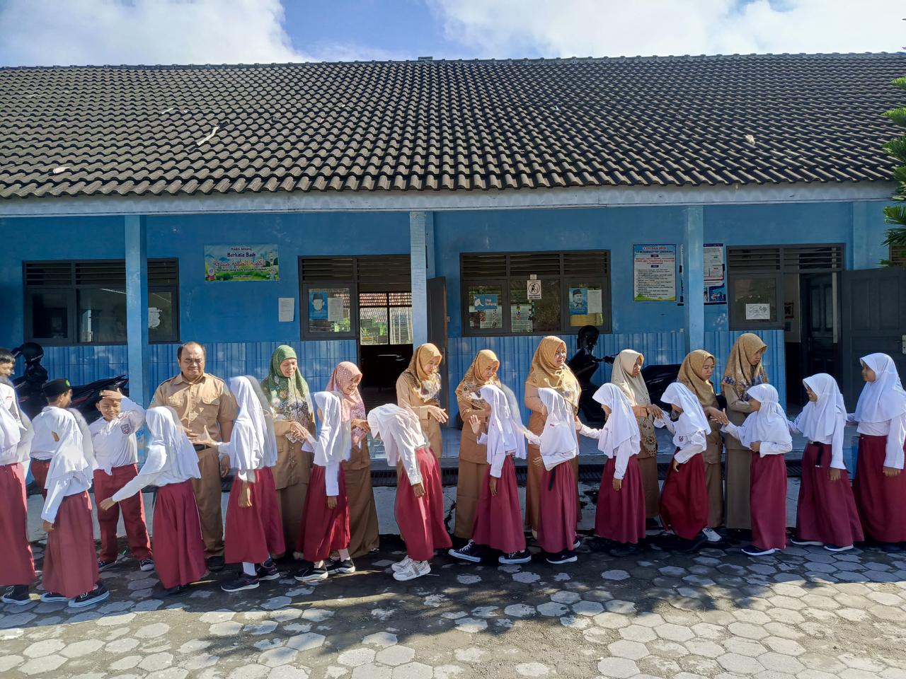 Deskripsi : Setelah selesai menjalani ibadah puasa selama sebulan penuh, umat Muslim dengan penuh semangat menyambut bulan Syawal. Hari yang sangat dinantikan, 1 Syawal adalah momen yang hanya terjadi sekali dalam setahun yakni hari Raya Idul Fitri atau dikenal dengan Lebaran. Kedatangan 1 Syawal bukan sekedar perayaan tetapi juga menjadi simbol kemenangan bagi umat Muslim atas kemenangan menahan lapar dan dahaga selama bulan Ramadan. Keberkahan bulan Syawal tidak hanya tercermin dalam kebahagiaan menyambutnya, tetapi juga dalam berbagai tradisi yang dilakukan umat Muslim, salah satunya adalah tradisi Syawalan atau Halal Bihalal. Tradisi Syawalan menjadi kegiatan tahunan yang dilakukan umat Muslim dalam mempererat tali silaturahmi persaudaraan juga menjadikan kesempatan untuk bertemu sanak saudara dan saling maaf-memaafkan. Syawalan dan Halal Bihalal di SD Muhammadiyah Lemahbang dilaksanakan di Halaman Sekolah dengan diikuti seluruh Siswa dan Guru.